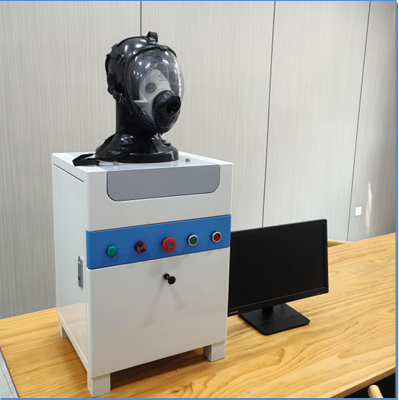 在测试中用来佩戴被测呼吸器面罩。试验头模安装在人工肺顶盖上,试验头模的嘴与人工肺的波纹管顶部开口相通,试验头模的左眼有一个压力取样口与人工肺底板上的微压传感器相连接,在检测呼吸器时,用来检测面罩内的压力,并送到计算机中进行处理。